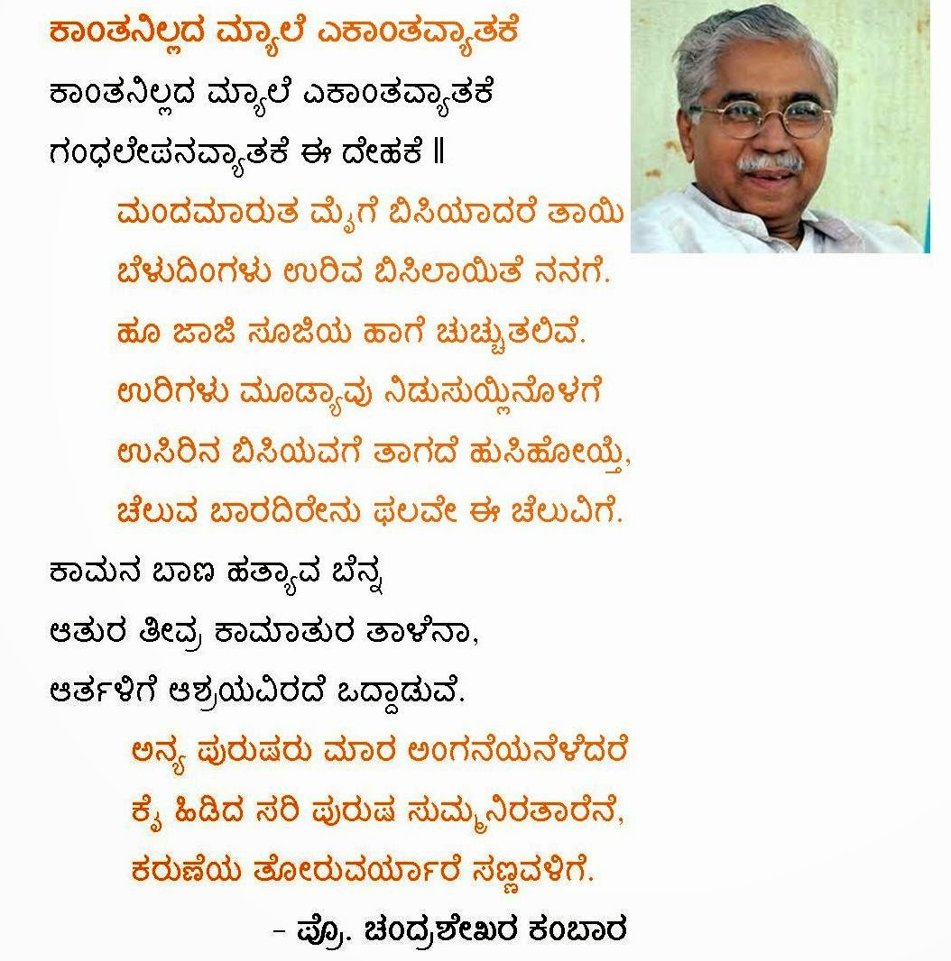 Chandrashekar Kambar Poems In Kannada : Kambara during a talk about kannada in dialect of the kannada language in his plays, and poems, in a similar style as in the works of d.r popularly known as shivapur kambar master in his native district, kambara had his schooling in.