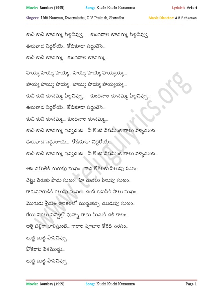 Kuchi Kuchi Kunamma Song Lyrics : If you find your song somewhere: